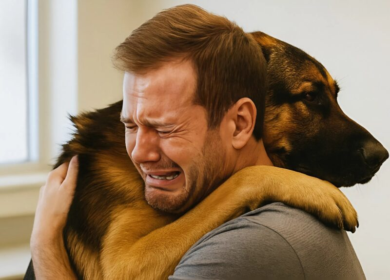 The dog, as if understanding every word, placed his paws on his owner’s shoulders and pressed close to him. The man hugged him tightly and began to cry loudly.
