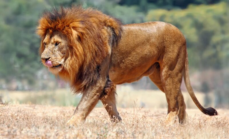 The girl moved further and further away until she found herself among low bushes, separated from the group. It was there, on the path, that a huge lion noticed her.