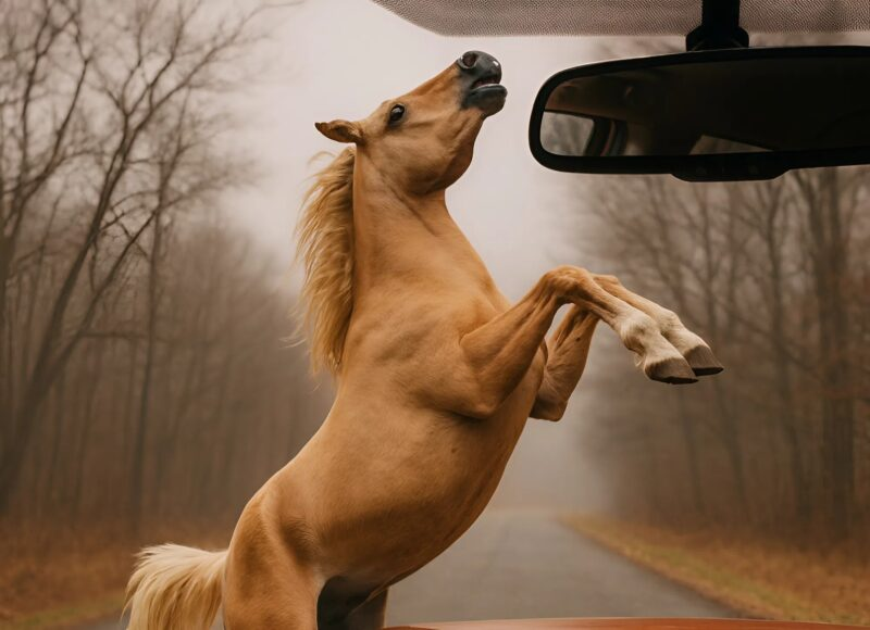In front of me, reared up on its hind legs, stood the horse. It snorted, struck the asphalt with its hooves, and looked straight through the windshield as if it was trying to stop me. My heart was pounding so hard that I didn’t dare get out at first. But the horse clearly wasn’t going to run away — it was nervous and seemed to be trying to say something.