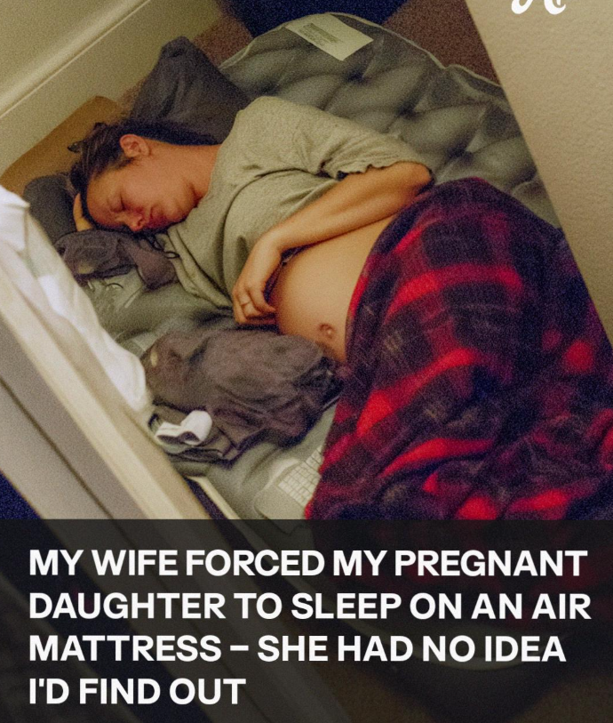 She was curled up on a thin, squeaky air mattress, one of those emergency ones you throw together for camping trips or unexpected guests. Her blanket had slipped halfway down her belly. She looked uncomfortable, her face tight and restless even in sleep.