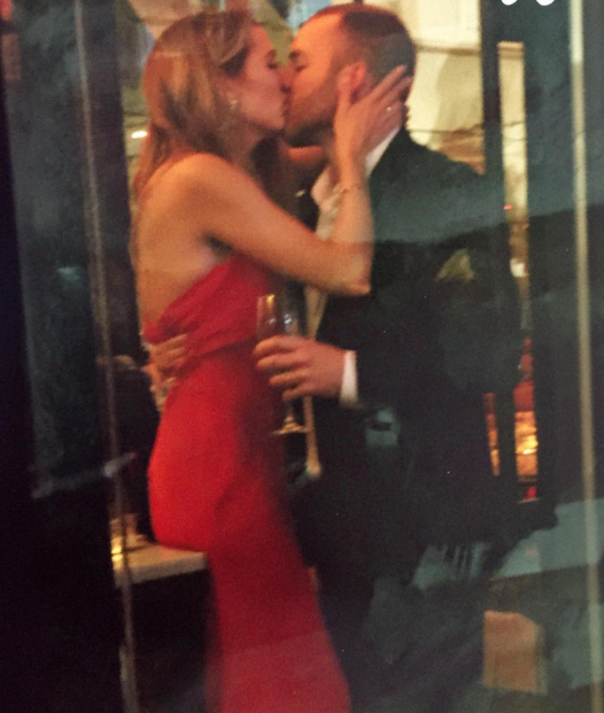 His arm was wrapped around a woman in a golden-colored dress that hugged her curves perfectly. She had impeccable hair and was laughing at something he’d said.