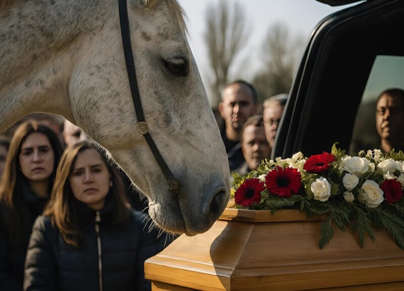 During the funeral, when the coffin was being placed into the car, a horse suddenly appeared: it walked slowly toward the coffin, and what it did next shocked everyone