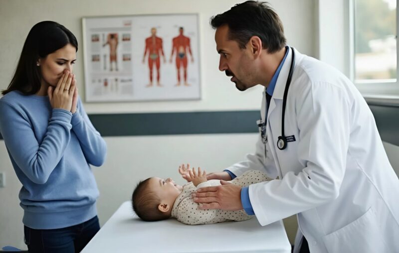 The doctor carefully examined her, checked her reflexes, listened to her heart and breathing. Then suddenly, he frowned, put down the stethoscope, and looked straight at me.