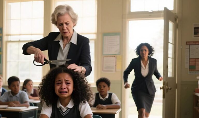 The girl calmly explained that her hair had only been styled the previous evening. The teacher, without hesitation, took the scissors and cut the hair, leaving uneven strands. Silence fell over the classroom .