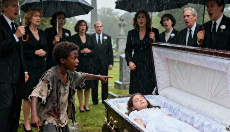 The guests exchanged glances: some stepped back, others stood, holding themselves, not knowing how to react. Richard, without taking his eyes off the coffin, felt a cold suspicion. He clenched his fists and turned to the boy: