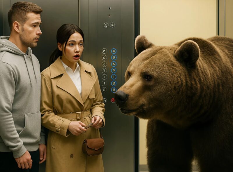 The man hesitated for a moment, then pressed the “close doors” button, but the elevator didn’t respond. The bear, as if sensing their fear, made no sound — it just breathed slowly, deeply, as though begging them not to be afraid.